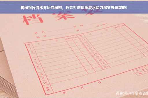 银行流水作为个人经济生活中的重要一环,在申请金融产品如贷款和信用卡时起到了关键作用,一份良好的银行流水记录不仅能够提升金融机构的信任度,还能增加借款额度并降低贷款利率,如何打造一份优质的银行流水呢?我们将为您详细解读银行流水的奥秘,并分享一些实用的方法和建议。