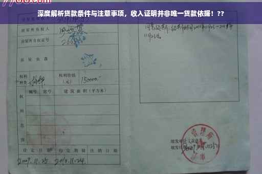 随着现代社会经济的快速发展,贷款已成为人们解决资金周转问题的一种常见方式,在申请贷款的过程中,收入证明是展现申请人还款能力的重要材料,仅仅有收入证明就能贷款吗?答案是不一定,本文将深度解析贷款条件及注意事项,帮助大家更好地了解贷款相关知识。
