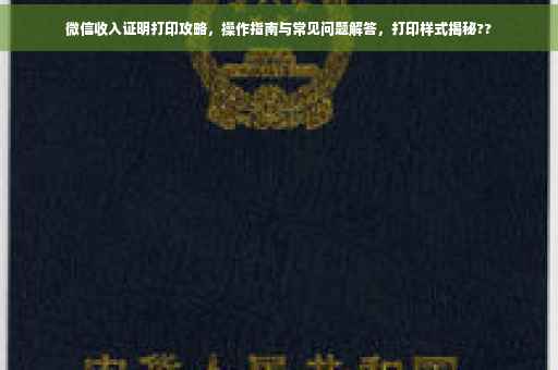 摘要:本文将为你提供微信收入证明的便捷操作指南,包括如何打印微信收入证明以及常见问题的解答。通过简单的步骤,你可以轻松获取微信收入证明并了解其打印出来的样式。本文还将解答你在操作过程中可能遇到的常见问题,帮助你顺利完成微信收入证明的打印。