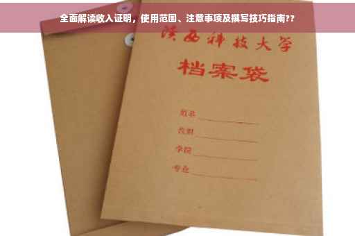 摘要:本文将全面解读收入证明,涵盖其应用范围、注意事项及撰写技巧。收入证明广泛应用于贷款申请、房屋租赁、签证办理等场合,具有证明个人经济能力的作用。在撰写时需注意真实性、准确性,格式规范,避免夸大事实。本文旨在帮助读者正确使用收入证明,提高办事效率。