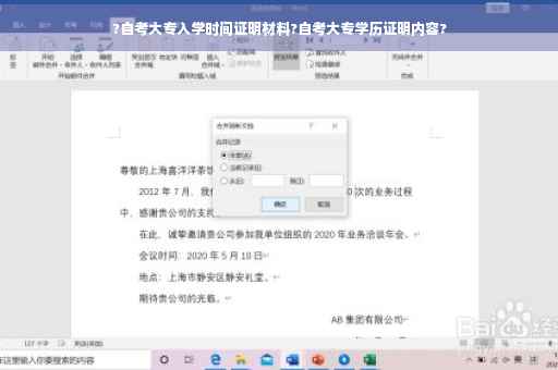 以下是我的回答,自考大专入学时间证明材料一般包括以下几部分: