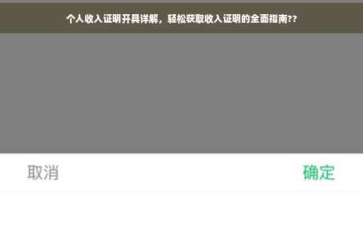 摘要:本指南旨在帮助顺利获取个人收入证明。通过简单的步骤和注意事项,让你了解如何准备和提交申请,包括与雇主沟通、填写必要信息、提供必要文件等。这份详尽的指南将帮助你顺利获得个人收入证明,解决你可能遇到的问题。无论你是求职、贷款或其他目的,本指南都能为你提供有力的支持。