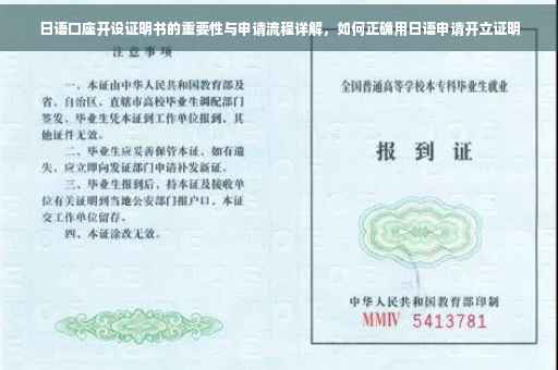 摘要:本文将全面解析日文口座开设证明书的重要性,包括其在金融交易、签证申请等方面的应用。文章还将详细介绍申请该证明书的流程,包括准备材料、前往银行办理等步骤。本文还将解释如何用日语表达“开证明”。对于需要在日本进行金融活动或签证申请的人来说,了解这些内容将大有裨益。