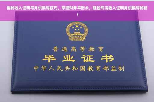 摘要:本文将揭秘收入证明与月供换算的技巧,帮助您轻松掌握财务平衡术。通过了解如何正确填写收入证明和月供换算,您将更好地掌握个人财务状况,合理规划收支,实现财务自由。本文为您详细解析收入证明和月供换算的方法与注意事项,助您轻松应对财务挑战。