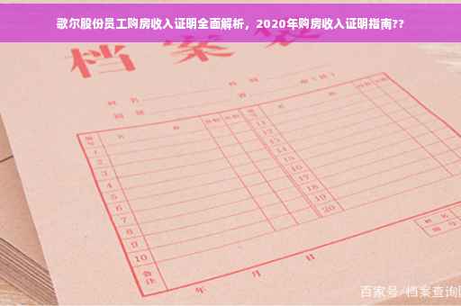 摘要:歌尔股份员工购房收入证明是一份证明员工收入状况的重要文件,对于购房具有关键作用。本文详细介绍了歌尔股份员工购房收入证明的内容,包括收入证明的目的、内容、申请流程等。特别是在2020年购房收入证明方面,本文提供了具体的介绍和说明,旨在帮助员工顺利申请购房贷款,实现安居乐业。