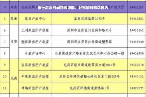 在现代社会,银行流水作为个人和企业财务支出的重要记录,广泛应用于各种场合,无论是办理贷款、信用卡申请还是其他金融业务,都需要提供一定时段的银行流水证明,掌握如何筛选银行流水时间,对于提高工作效率、确保信息安全具有重要意义,本文将详细介绍银行流水时间筛选的方法与技巧,帮助您轻松应对各类需求。