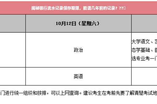 了解银行流水记录的保存期限及相关问题对个人和企业都至关重要,在查询和调取银行流水记录时,需遵守规定并保护个人信息,希望通过本文的介绍,读者能更好地了解银行流水记录的保存期限、查询方法和注意事项。