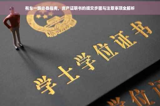 提交资产证明书是一个相对复杂的过程,需要您准备充分的材料并了解相关要求,在提交车辆作为资产证明时,您需要提供车辆所有权证明、车辆价值证明等材料,本文详细介绍了提交资产证明书的步骤和注意事项,希望能帮助您顺利完成相关手续,如果您有任何疑问或需要帮助,请咨询专业人士或相关机构。