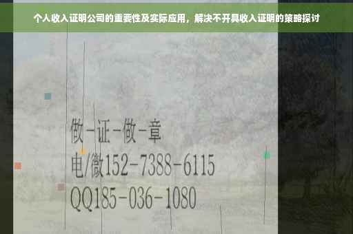 在当今社会,随着经济的不断发展和就业市场的日益繁荣,个人收入证明逐渐成为人们生活中不可或缺的一部分,特别是在办理贷款、信用卡、租房以及签证等关键事务时,个人收入证明的重要性愈发凸显,本文将详细介绍个人收入证明公司的作用、意义以及实际应用,帮助读者更好地了解和使用这一服务。