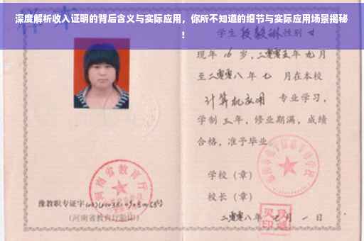 摘要:收入证明是一种证明个人或企业收入状况的文件,其背后含义和实际应用十分广泛。本文深度解析了收入证明的内容、作用以及实际应用场景,解释了收入证明所涵盖的收入类型、开具方式及其用途,包括贷款、信用卡申请、房屋租赁、签证办理等方面。通过本文,读者可以全面了解收入证明的意义和重要性。