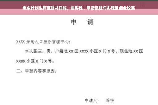 在当今社会,计划生育政策对于每个家庭来说都是至关重要的,惠东地区作为一个经济发达、人口密集的区域,其计划生育政策更是备受关注,本文将详细介绍惠东计划生育证明书的重要性,以及申请流程,帮助广大市民更好地了解和掌握相关政策。