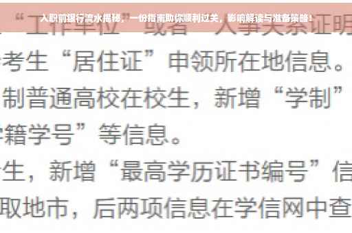 在求职过程中,许多企业为了评估你的经济实力和信用状况,会要求你提供入职前的银行流水记录,银行流水作为反映个人财务状况的重要证明,能够展示你的收入、支出及消费习惯,了解如何获取并正确解读银行流水信息,对于顺利应对求职过程中的这一环节至关重要,本文将为你提供一份详细的指南,助你在入职前顺利应对银行流水的相关要求。