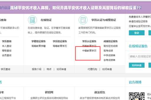 平安优才作为金融行业的佼佼者,其收入水平令人羡慕,这一职业背后的辛勤付出和竞争压力也不容忽视,本文希望通过探讨平安优才的收入证明问题,帮助大家了解这一职业背后的真相,为有志于投身金融行业的朋友提供一些参考。