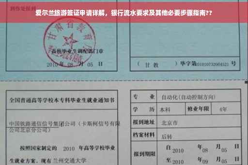 摘要:爱尔兰旅游签证申请流程包括提交必要材料、在线填写申请表格等步骤。银行流水是重要的一项要求,需提交近三个月的银行流水记录。还需提供护照、照片、旅行计划等相关材料。本文详细解析了爱尔兰旅游签证的申请流程,帮助申请人顺利获得签证,享受美好的爱尔兰之旅。