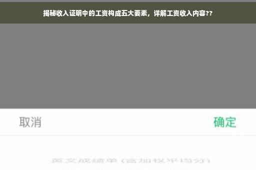 在现代社会,收入证明是求职、贷款等场合不可或缺的一项证明文件,很多人对于收入证明中的工资构成并不十分清楚,只是简单地理解为基本工资,工资构成包括多个部分,本文将为您详细解读工资构成的五大要素,让您明白收入证明中的工资究竟包括哪些内容。