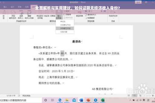 摘要:本文将探讨如何证明没有经济收入的问题,提供全面解析和实用建议。文章首先介绍了证明无经济收入的重要性,随后详细阐述了多种证明方法,包括提供个人财务记录、银行对账单、税务申报记录等。本文还将指导读者如何正确填写相关证明表格,并强调注意事项。实用建议部分则提醒读者在面临经济困难时寻求合法途径证明经济状况,以获取相关支持。本文旨在帮助读者解决证明无经济收入的问题,为需要证明经济状况的人群提供实用指导。
