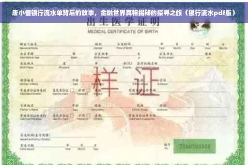 随着金融科技的飞速发展,越来越多的人开始接触并依赖互联网金融服务,在这个大背景下,银行流水单成为了衡量个人经济实力、信用状况的重要依据之一,本文将通过唐小僧的银行流水单,带您一窥金融世界的真实面貌,让我们深入了解银行流水单的重要性,以及背后所蕴含的故事。