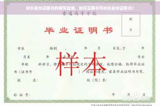 摘要:,,本文介绍了如何撰写村长身份证明书。该证明书是证明村长身份的重要文件,内容包括村长的姓名、职务、所在村庄等信息。撰写时需注意格式规范、内容真实准确,包括证明人的签名和日期。本文旨在为需要撰写村长身份证明书的人提供指导和参考。