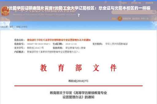 毕业证都是一样的,辽阳校区现在还隶属于沈阳工业大学,沈阳工业大学辽阳分校始建于1978年,校名为辽阳化纤工业学院,1984年6月,学校规划原中国石化总公司管理更名为辽阳石油化工专科学校,1989年5月经原中国石油化工总公司批准,报国家教育委员会备案恢复本科招生,2001年10月经教育部批准学校划归辽宁省。管理整体并入沈阳工业大学成立沈阳工业大学辽阳校区,2017年5月成立沈阳工业大学辽阳分校。