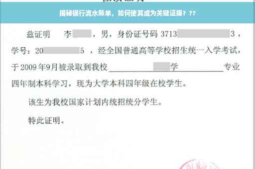 在当今金融市场日益繁荣和数字化发展的时代,银行业务已成为人们生活中不可或缺的一部分,银行流水账单作为记录个人或企业资金流动的重要文件,其在多个场合的证据作用日益凸显,本文将深入探讨银行流水账单的重要性、使用场景以及注意事项,帮助大家更好地了解和利用这一关键证据。