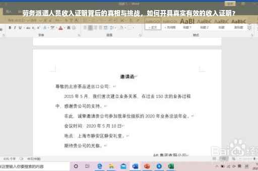 摘要:劳务派遣人员的收入证明揭示了一个复杂的社会现象。这些人员的收入状况反映了劳务派遣行业的现状与挑战。关于收入证明的开具,通常需要联系劳务派遣公司或雇主,但过程可能繁琐且存在困难。深入了解背后的真相,包括收入证明的可靠性、透明度以及可能存在的歧视问题,对于改善劳务派遣人员的权益至关重要。