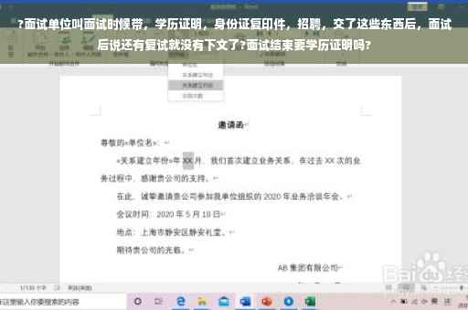 面试时通常会要求带上毕业证原件或复印件以证明你的学历。这是为了确认你是否符合职位的教育背景要求。