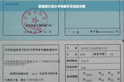 摘要:本文介绍了徽商银行流水字体解析及徽商银行流水模板相关内容。通过对徽商银行流水账单的详细解析,包括字体、格式、内容等方面,帮助用户更好地理解和使用银行流水账单。提供相关的模板,方便用户快速生成符合规范的流水账单。本文旨在为用户提供便捷的银行流水管理解决方案。
