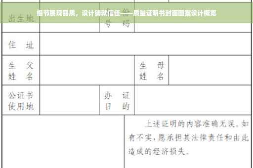 质量证明书的封面图案设计在展现产品品质和企业信誉方面扮演着重要角色,设计师需关注设计理念、原则、要素及应用,不断创新,以满足市场和消费者的需求,为企业赢得更多信任,通过这样的设计,消费者可以获得更好的视觉体验,进一步加深对产品和企业的认知和信任。