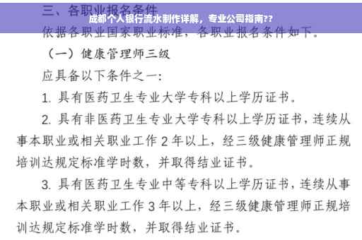 成都制作个人银行流水并不复杂,只需遵循本文所述步骤和注意事项,便能轻松完成,希望本文能帮助大家更好地了解个人银行流水的重要性及制作方法,为日常生活和工作带来便利,如有更多疑问,建议咨询专业金融人士或银行工作人员。(注:本文仅供参考,具体操作请根据实际情况和银行规定执行。)
