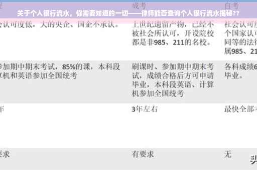 摘要:个人银行流水是记录个人银行账户资金往来的重要文件。律师在某些情况下可以查询个人的银行流水,但必须遵守法律规定并获得相关授权。了解银行流水的查询权限和程序,有助于保护个人隐私和财产安全。本文将介绍银行流水的基本知识,以及律师查询银行流水的相关注意事项。