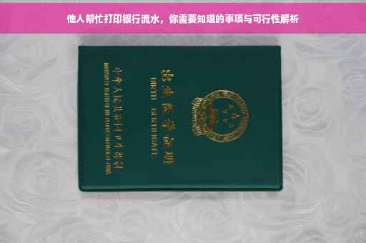 摘要:关于他人帮忙打印银行流水的问题,需要注意风险与合法性。确保委托可靠且具备相关权限,避免泄露个人信息。了解银行政策,确保流程合规。此文将探讨他人帮忙打印银行流水的可行性、注意事项及建议,帮助您做出明智决策。