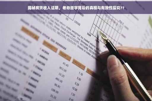 摘要:本文详细解析了房贷收入证明,探讨了老总签字背后的故事。文章指出,房贷收入证明是购房贷款的重要材料之一,老总签字的有效性取决于多种因素,如公司的规定、签字流程等。本文旨在帮助读者了解房贷收入证明的重要性及老总签字的真实意义,为购房贷款提供指导。
