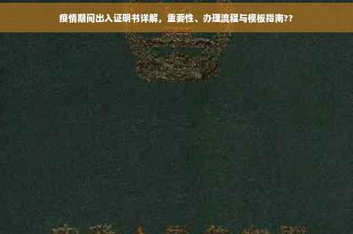 自全球新冠疫情爆发以来,疫情防控已成为全球关注的焦点,为了有效遏制疫情传播,各级政府迅速反应,推出了一系列防控措施,在这其中,疫情期间出入证明书制度起到了至关重要的作用,本文将为您详细介绍这一制度的重要性、办理流程以及注意事项。