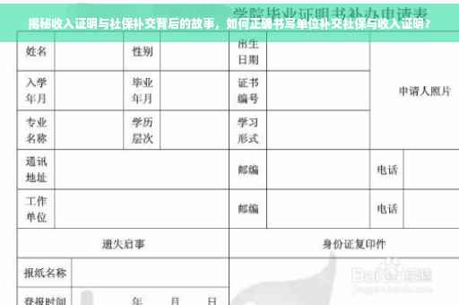 摘要:本文将揭示收入证明与单位补交社保背后的故事。介绍收入证明的重要性及其在日常工作和生活中的实际应用,同时探讨单位补交社保的相关情况。本文将指导读者如何正确书写收入证明和单位补交社保的申请,帮助读者了解相关流程和注意事项。通过本文,读者可以更好地维护自身权益,确保个人经济安全。