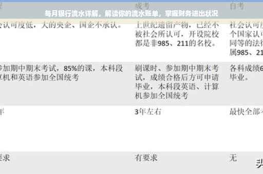 银行流水账单对于我们管理个人财务至关重要,通过深入了解银行流水账单的内容,并学会如何解读这些信息,我们可以更好地掌握自身的财务状况,做出明智的财务决策,希望本文的详解能帮助您更加清晰地了解每月银行流水的奥秘,并助您更好地管理自己的财务。