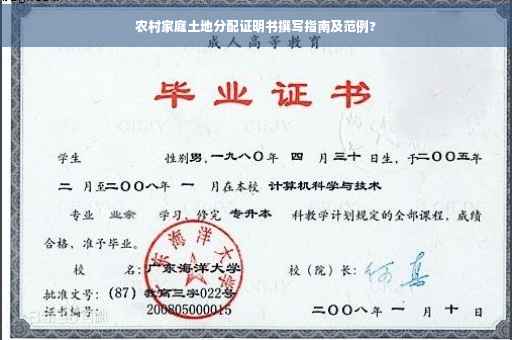 摘要:,,本文介绍了农村家庭土地分配证明书的撰写方式。该证明书用于证明农村家庭对土地的分配合法性和权益保障。内容包括土地分配的具体时间、地点、四至界限、面积等详细信息,以及证明分配过程的合法性和公正性。本文旨在帮助农民朋友们正确书写土地分配证明书,保障自身权益,避免因书写不当导致不必要的纠纷和损失。