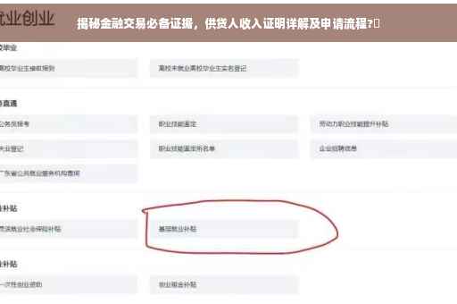 供贷人收入证明是金融交易中的重要环节,对于借款人来说至关重要,本文详细介绍了供贷人收入证明的作用、内容要点以及如何准备一份有效的收入证明,希望读者能够更好地了解和应对金融交易中的相关事宜,顺利办理贷款手续,实现个人金融目标。