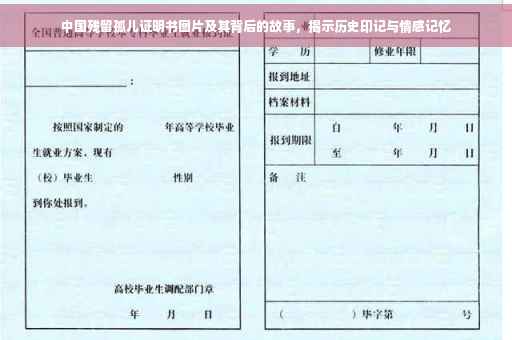 摘要:本文将介绍中国残留孤儿证明书图片及其背后的故事。这些图片记录了一段历史的见证,反映了中国社会的变迁和孤儿群体的生存状况。通过展示这些图片,人们可以更加深入地了解这些孤儿的生活经历,引发社会关注和关爱。本文还将提供中国残留孤儿证明书图片大全,以便读者更好地了解这一话题。
