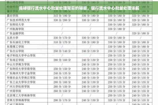 随着金融行业的快速发展,银行业务日益繁忙,银行流水中心作为银行业务的重要组成部分,承担着批量处理客户交易信息的重任,本文将带您深入了解银行流水中心批量处理的运作机制,揭示其背后的秘密,为您的金融生活提供更多便利。