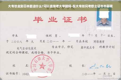 你好大专毕业以后可以去日本参加修士考试,不过因为日本大学院对学历年限都有要求,由于大专生普遍三年制,不满16年正规教育经历的要求,所以无法直接赴日读研,需要读一年的”研究生”(进入日本大学修士课程的前期预备阶段,也就是国内所说的“预科”)。