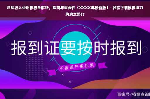 随着房地产市场的持续繁荣,购房已成为大众关注的焦点,在购房过程中,收入证明是不可或缺的一环,本文将为您详细介绍XXXX年购房收入证明模板的制作要点及其重要性,帮助您顺利完成购房手续。