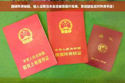 摘要:本篇全攻略揭秘买房收入证明范本,旨在帮助购房者轻松应对购房手续。通过提供收入证明模板和图片,让购房者了解如何准备和填写相关文件,从而顺利完成购房流程。简洁明了的内容,旨在为购房者提供实用的指导和帮助。