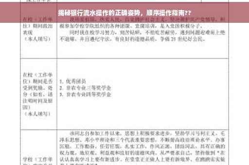 摘要:银行流水需要按顺序操作,确保记录准确无误。正确姿势包括了解银行流水的重要性,遵循银行规定和流程,注意时间顺序和金额核对等细节。遵循正确的流水操作姿势有助于个人财务管理和信用记录,避免不必要的麻烦。本文旨在揭示银行流水操作的正确方法。