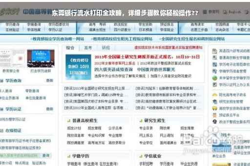 摘要:本篇攻略将详细介绍东莞银行流水打印的步骤。从准备材料到实际操作,一步步指导你如何轻松打印出银行流水。无论是个人还是企业,均可参考此攻略,以便快速获取所需的银行流水记录。操作简单易懂,让你轻松掌握东莞银行流水打印的全流程。