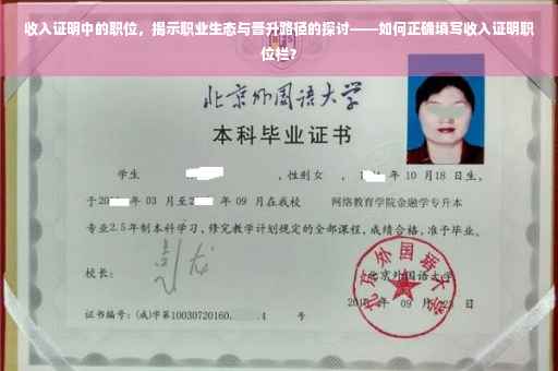 随着现代经济的持续繁荣与就业市场的蓬勃发展,收入证明已成为我们日常生活中不可或缺的一部分,无论是申请贷款、办理信用卡,还是租房、落户,收入证明都是验证我们经济状况的重要凭证,而在这份证明中,职位的填写尤为关键,因为它不仅反映了我们在职场中的地位和职责,更在某种程度上决定了我们是否能够顺利获得所需的服务或资源,本文将从多个角度深入探讨收入证明中职位的重要性、真实职业生态的揭示、职场晋升路径以及如何正确填写收入证明中的职位。