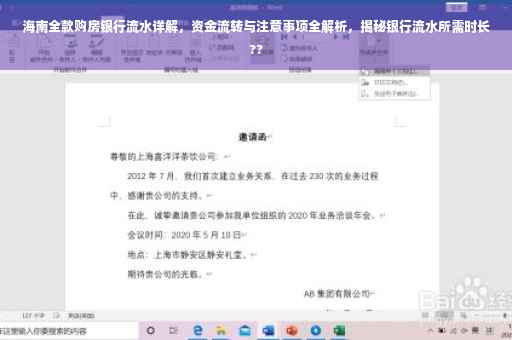 摘要:本文将详细介绍海南全款购房过程中的银行流水要求及注意事项。从银行流水的重要性、所需材料、时间要求等方面入手,帮助购房者了解资金流转的细节,避免不必要的麻烦。购房者在准备全款购房时,应提前了解银行流水规定,确保资金安全顺利购房。