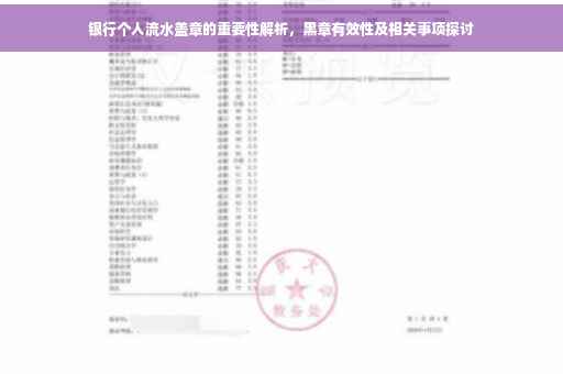 摘要:本文介绍了银行个人流水盖章的重要性,解析了个人流水账单盖章的相关事项。文章指出,银行流水盖章具有法律效力,黑章有效,但需注意辨别真伪。个人应妥善保管银行流水账单,确保其完整性和真实性,以便在处理金融事务时提供可靠的证明。本文旨在帮助公众了解银行流水账单的重要性及正确使用方式。