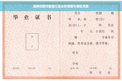 摘要:本文将揭露沈阳地区代做银行流水的真相与潜在风险。通过深入了解,代做银行流水已成为一种不法行为,不仅违反银行规定,还可能涉及欺诈等违法行为。本文提醒广大市民,切勿轻信代做银行流水的诱惑,以免陷入法律风险,造成个人财产和信誉损失。本文将介绍如何识别银行流水的真伪,帮助市民保护自身权益。