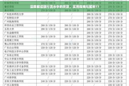 摘要:,,本文深入解读银行流水中的贷款内容,为读者提供实用指南。文中解析了银行流水中的贷款含义,包括贷款的种类、申请流程、审批标准等。帮助读者了解如何通过银行流水获得贷款,以及在申请过程中需要注意的事项。本文旨在为读者提供清晰、实用的信息,以便更好地利用银行流水实现贷款需求。