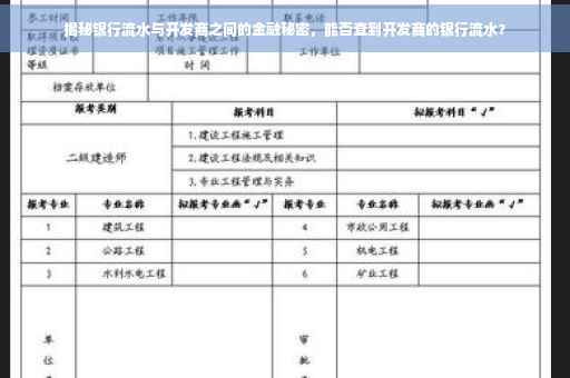 在当今社会,随着经济的飞速发展,银行业务与房地产开发商之间的关联越来越紧密,银行流水作为评估个人经济实力的重要依据之一,在购房过程中扮演着至关重要的角色,而开发商作为房地产市场的主要参与者,其背后与银行的合作也颇为引人关注,本文将深入探讨银行流水与开发商之间的关系,揭示背后的金融秘密。